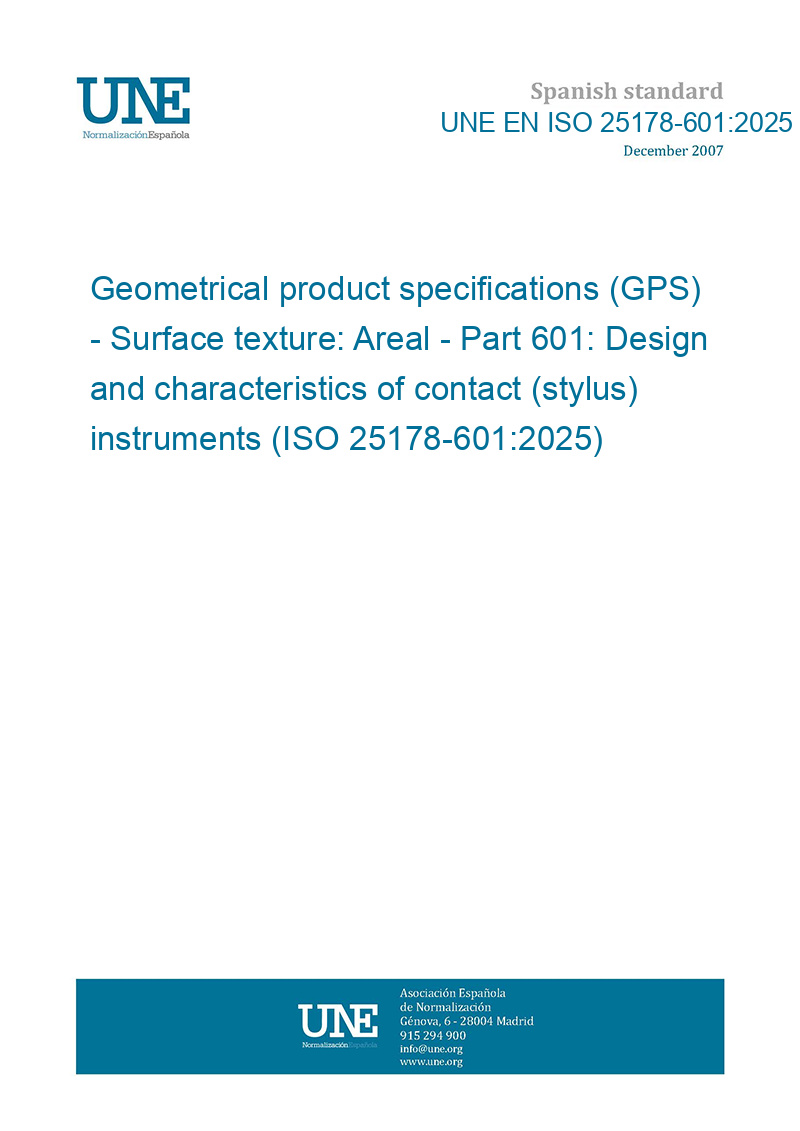 Especificación geométrica de productos (GPS). Calidad superficial: Áreas. Parte 601: Diseño y características de instrumentos de contacto (con palpador). (ISO 25178-601:2025).
