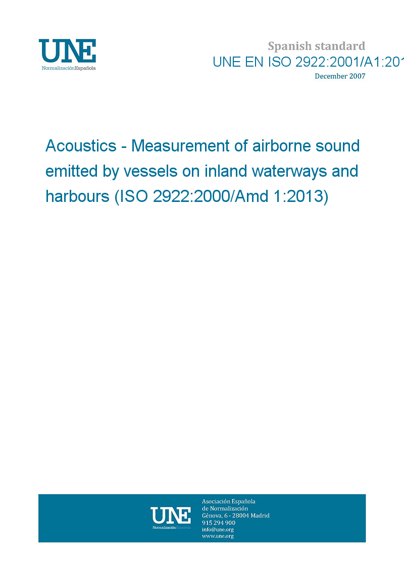 >UNE standards>UNE EN ISO 2922:2001/A1:2013 Acoustics - Measurement of airborne sound emitted by vessels on inland waterways and harbours - Amendment 1 (ISO 2922:2000/Amd 1:2013)