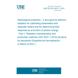 This standard UNE EN ISO 4037-1:2021 Radiological protection - X and gamma reference radiation for calibrating dosemeters and doserate meters and for determining their response as a function of photon energy - Part 1: Radiation characteristics and production methods (ISO 4037-1:2019) (Endorsed by Asociación Española de Normalización in March of 2021.) is classified in these ICS categories:
