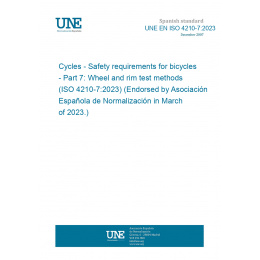Cycles - Safety requirements for bicycles - Part 7: Wheel and rim test methods (ISO 4210-7:2023) (Endorsed by Asociación Española de Normalización in March of 2023.)