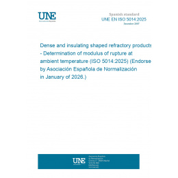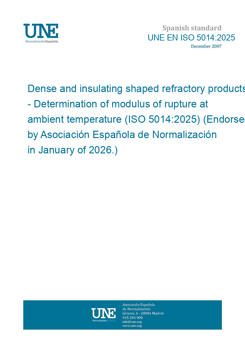 Productos refractarios conformados densos y aislantes. Determinación del módulo de ruptura a temperatura ambiente. (ISO 5014:2025) (Ratificada por la Asociación Española de Normalización en enero de 2026.)
