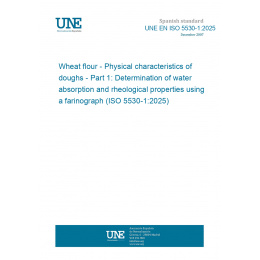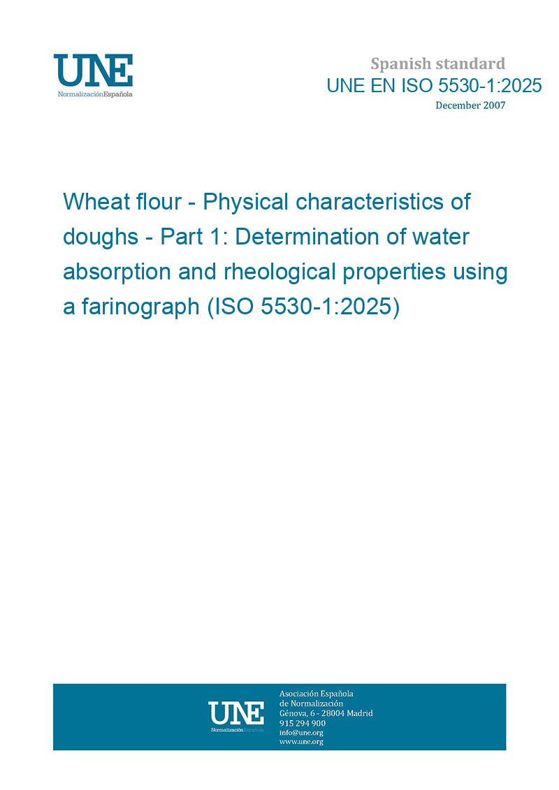 This standard UNE EN ISO 5530-1:2025 Wheat flour - Physical characteristics of doughs - Part 1: Determination of water absorption and rheological properties using a farinograph (ISO 5530-1:2025) is classified in these ICS categories: