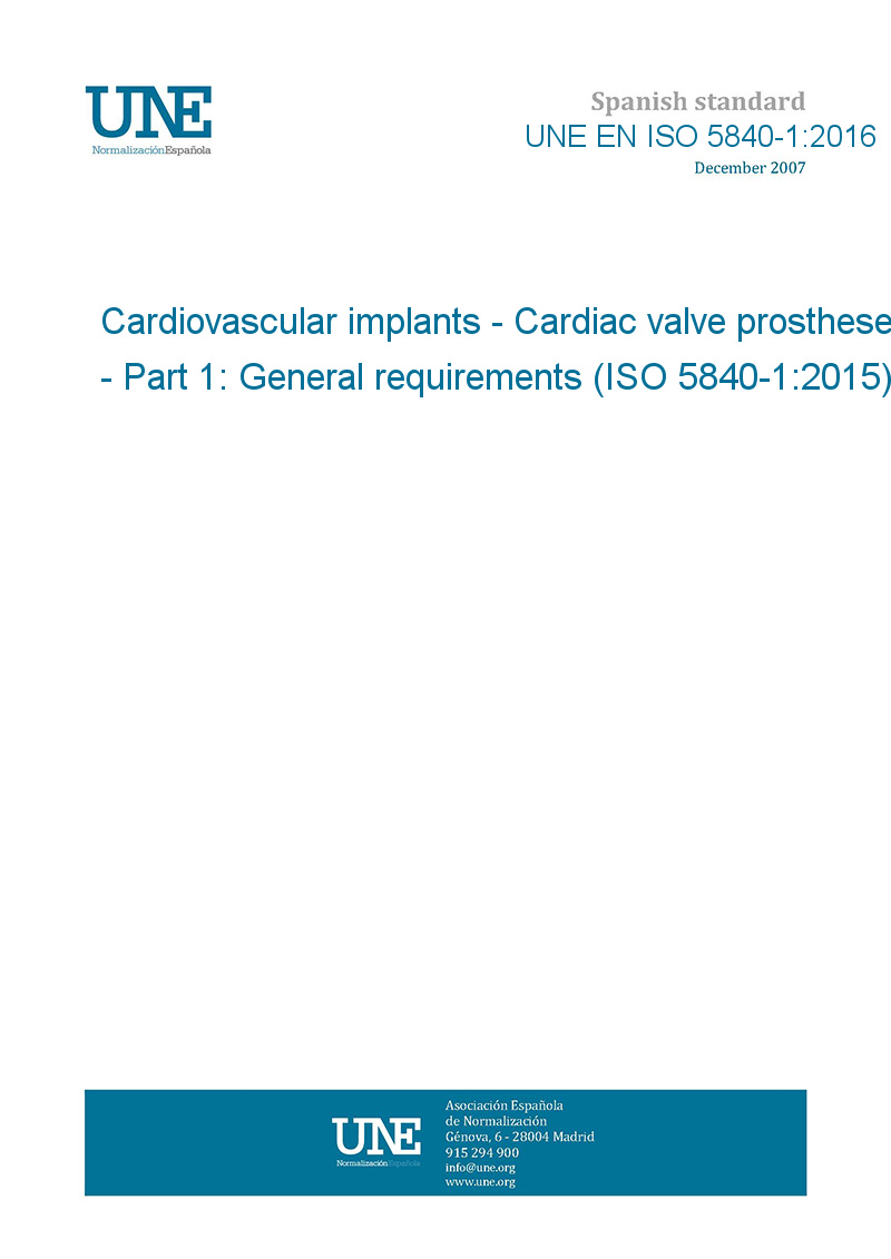 Implantes cardiovasculares. Prótesis de válvulas cardíacas. Parte 1: Requisitos generales. (ISO 5840-1:2015).