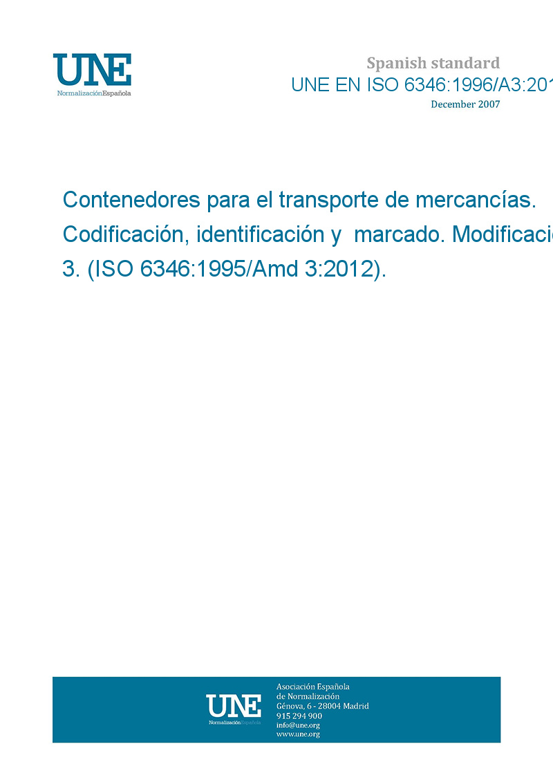 Contenedores para el transporte de mercancías. Codificación, identificación y marcado. Modificación 3. (ISO 6346:1995/Amd 3:2012).