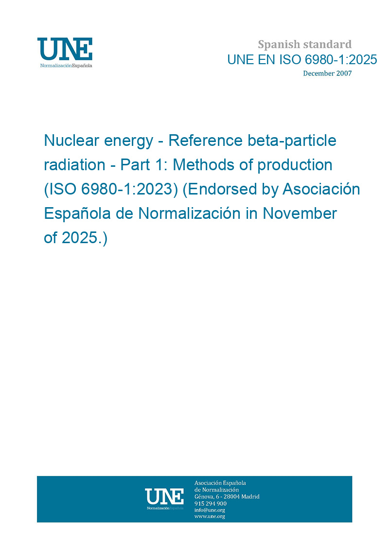 Energía nuclear. Radiación de partículas beta de referencia. Parte 1: Métodos de producción (ISO 6980-1:2023) (Ratificada por la Asociación Española de Normalización en noviembre de 2025.)