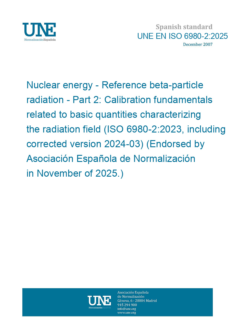 Energía nuclear. Radiación de partículas beta de referencia. Parte 2: Fundamentos de calibración relacionados con las magnitudes básicas que caracterizan el campo de radiación (ISO 6980-2:2023, incluida la versión corregida 2024-03) (Ratificada por la Asociación Española de Normalización en noviembre de 2025.)