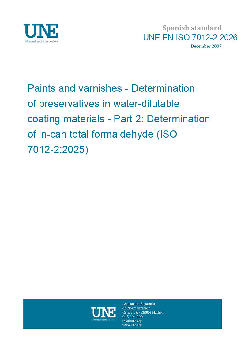 Pinturas y barnices. Determinación de los conservantes en los materiales de recubrimiento diluibles en agua. Parte 2: Determinación del formaldehído total en envase. (ISO 7012-2:2025).
