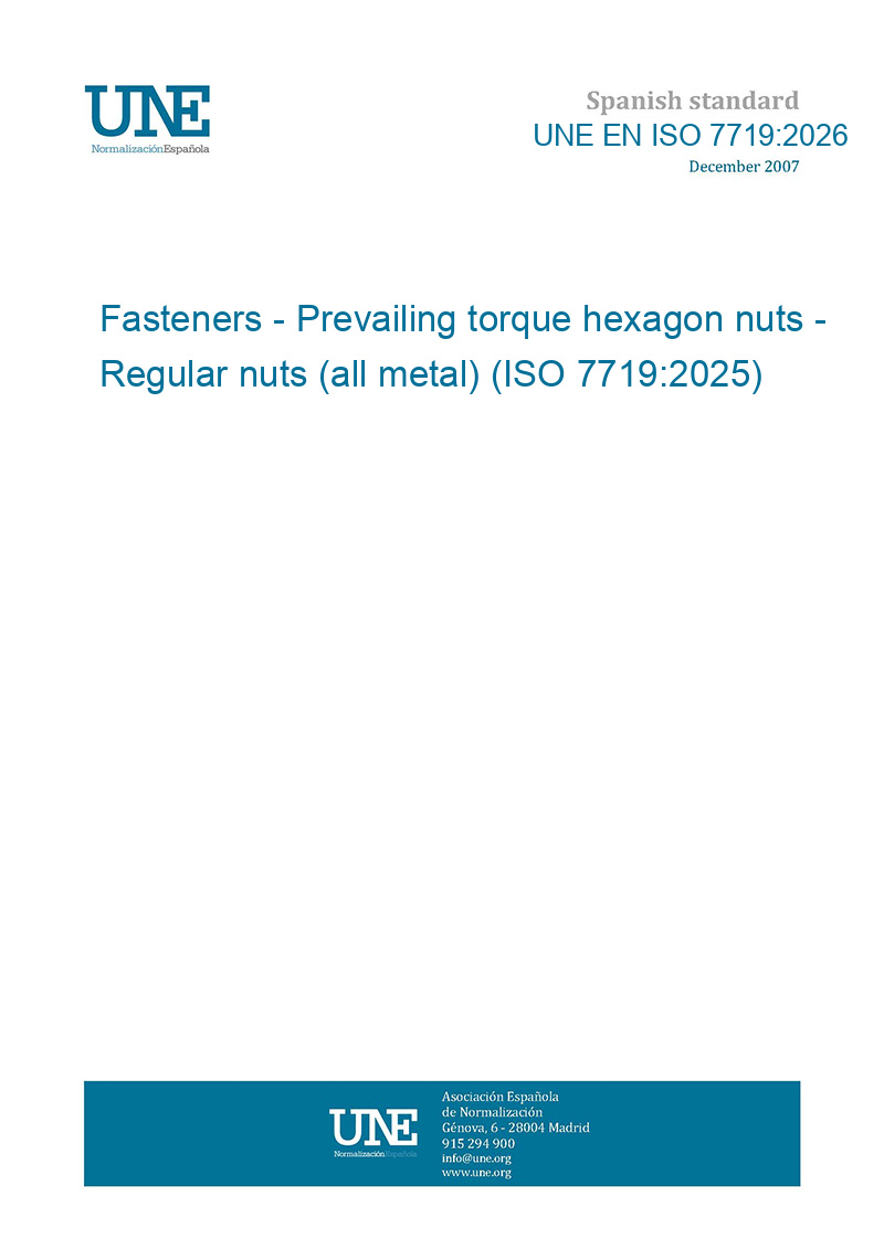 Elementos de fijación. Tuercas hexagonales autofrenadas. Tuercas normales (todo metal). (ISO 7719:2025).