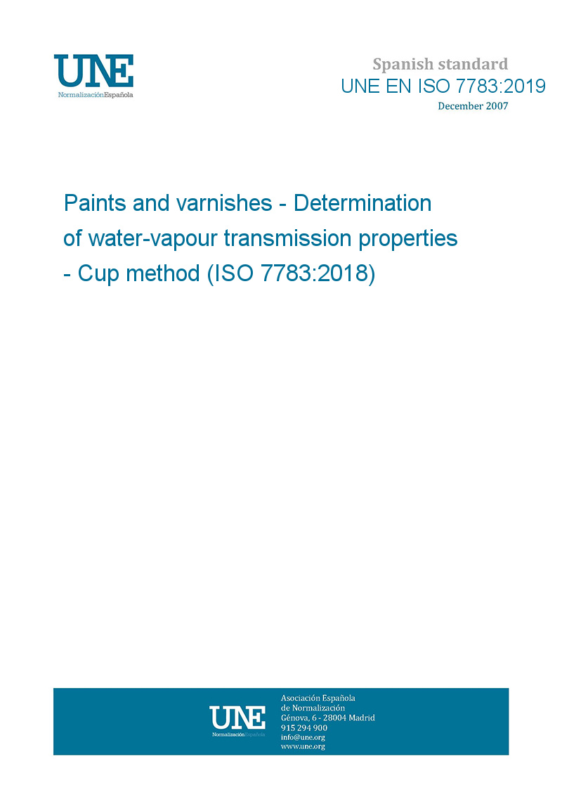 Pinturas y barnices. Determinación de la permeabilidad al vapor de agua. Método de la cápsula. (ISO 7783:2018)