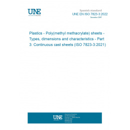 Plásticos. Hojas de poli(metacrilato de metilo). Tipos, dimensiones y características. Parte 3: Hojas coladas continuas. (ISO 7823-3:2021).
