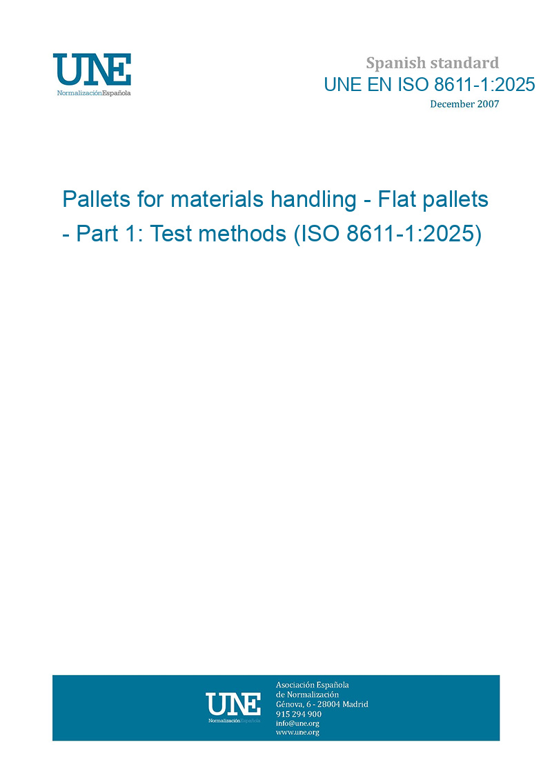Paletas para la manipulación de mercancías. Paletas planas. Parte 1: Métodos de ensayo. (ISO 8611-1:2025).