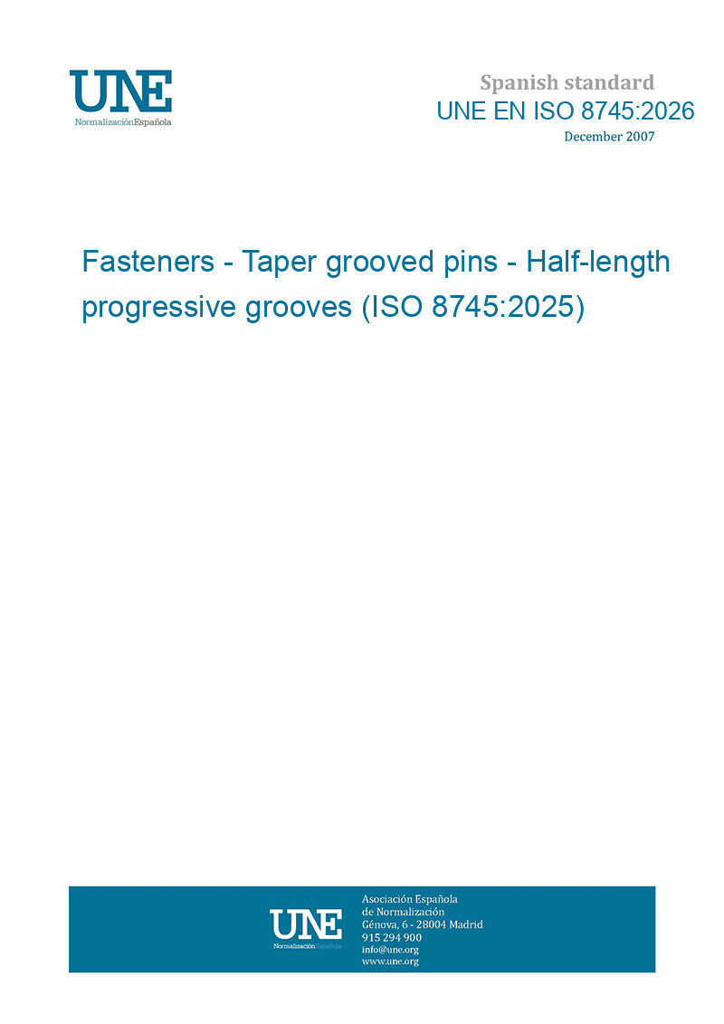 This standard UNE EN ISO 8745:2026 Fasteners - Taper grooved pins - Half-length progressive grooves (ISO 8745:2025) is classified in these ICS categories: