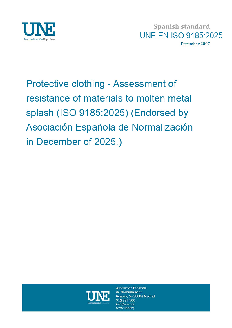 Protective clothing - Assessment of resistance of materials to molten metal splash (ISO 9185:2025) (Endorsed by Asociación Española de Normalización in December of 2025.)