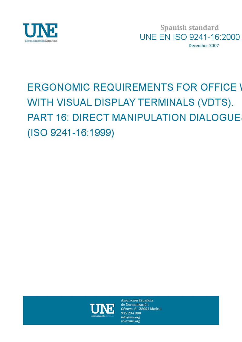 | Standard number: | UNE EN ISO 9241-16:2000 |