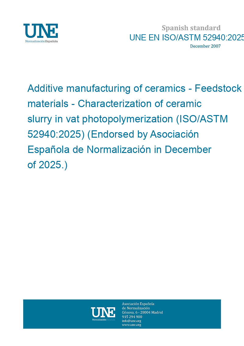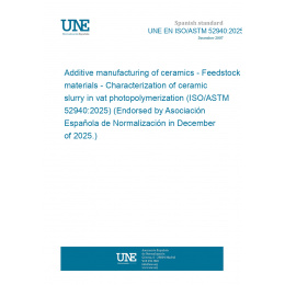Additive manufacturing of ceramics - Feedstock materials - Characterization of ceramic slurry in vat photopolymerization (ISO/ASTM 52940:2025) (Endorsed by Asociación Española de Normalización in December of 2025.)
