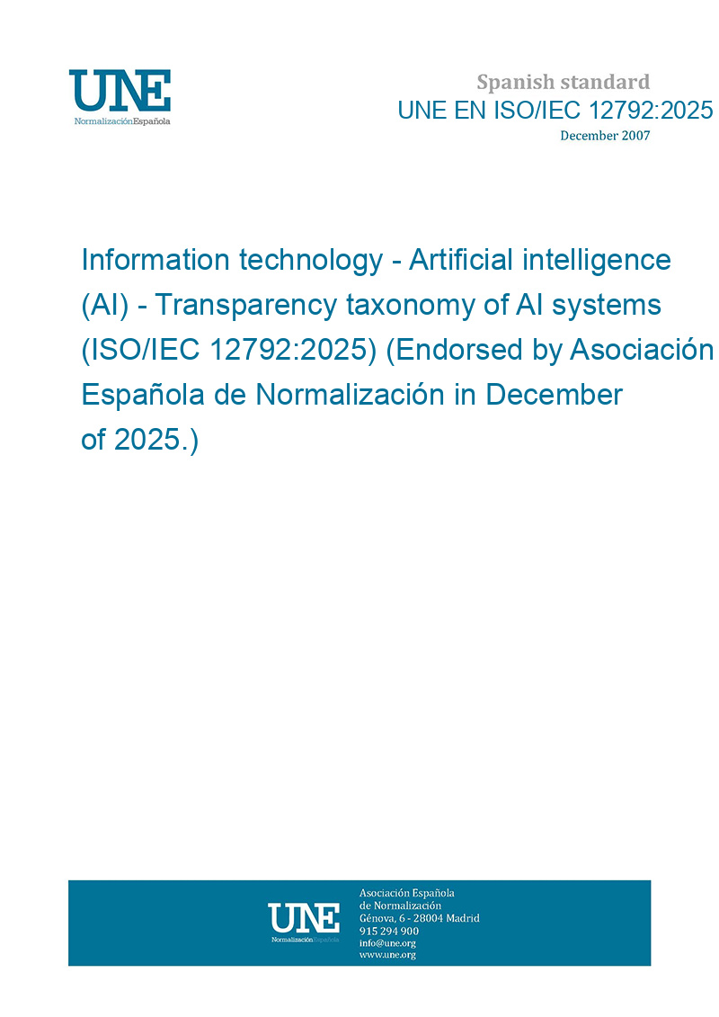 Tecnología de la información. Inteligencia artificial (IA). Taxonomía de transparencia de los sistemas de IA (ISO/IEC 12792:2025) (Ratificada por la Asociación Española de Normalización en diciembre de 2025.)