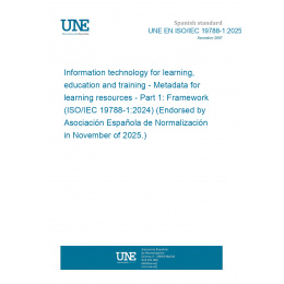 Information technology for learning, education and training - Metadata for learning resources - Part 1: Framework (ISO/IEC 19788-1:2024) (Endorsed by Asociación Española de Normalización in November of 2025.)