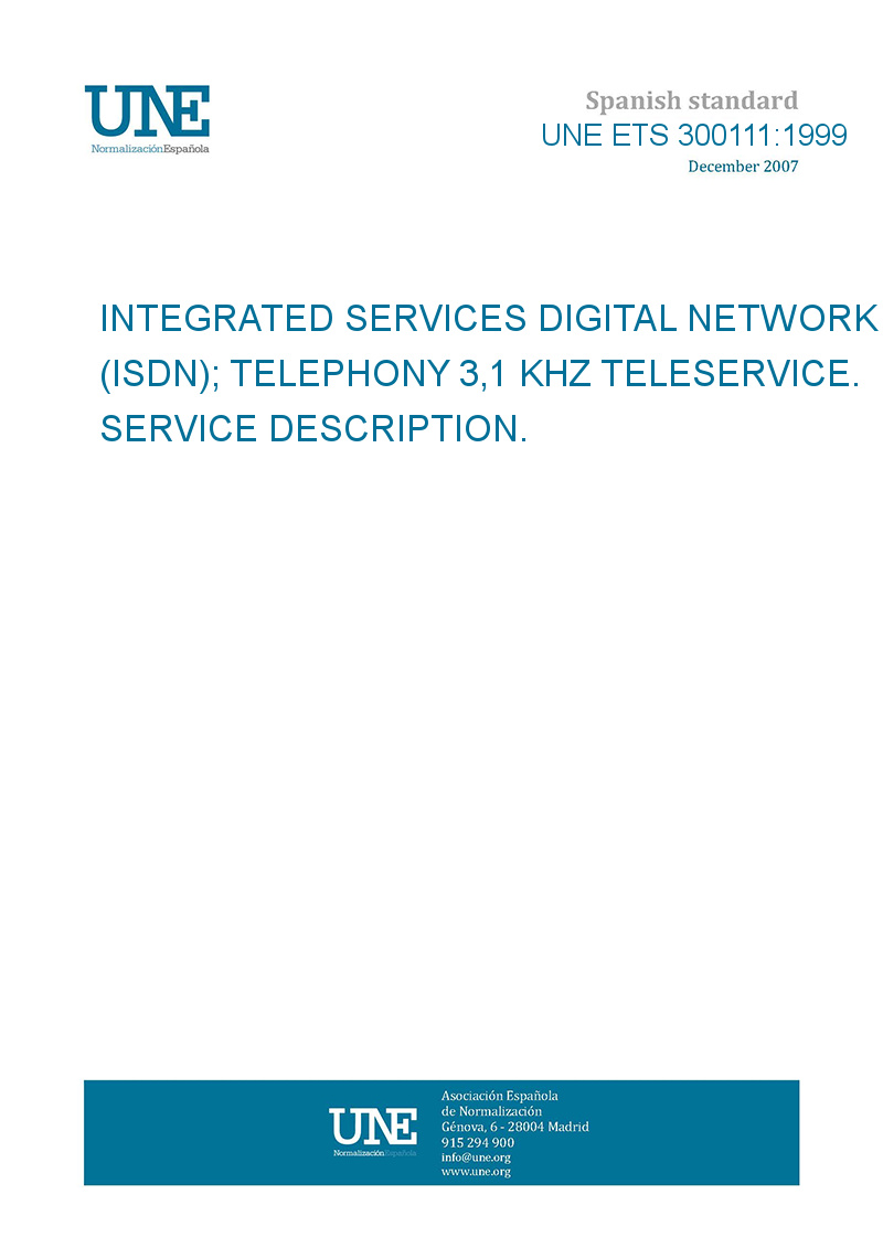 This standard UNE ETS 300111:1999 INTEGRATED SERVICES DIGITAL NETWORK (ISDN); TELEPHONY 3,1 KHZ TELESERVICE. SERVICE DESCRIPTION. is classified in these ICS categories: