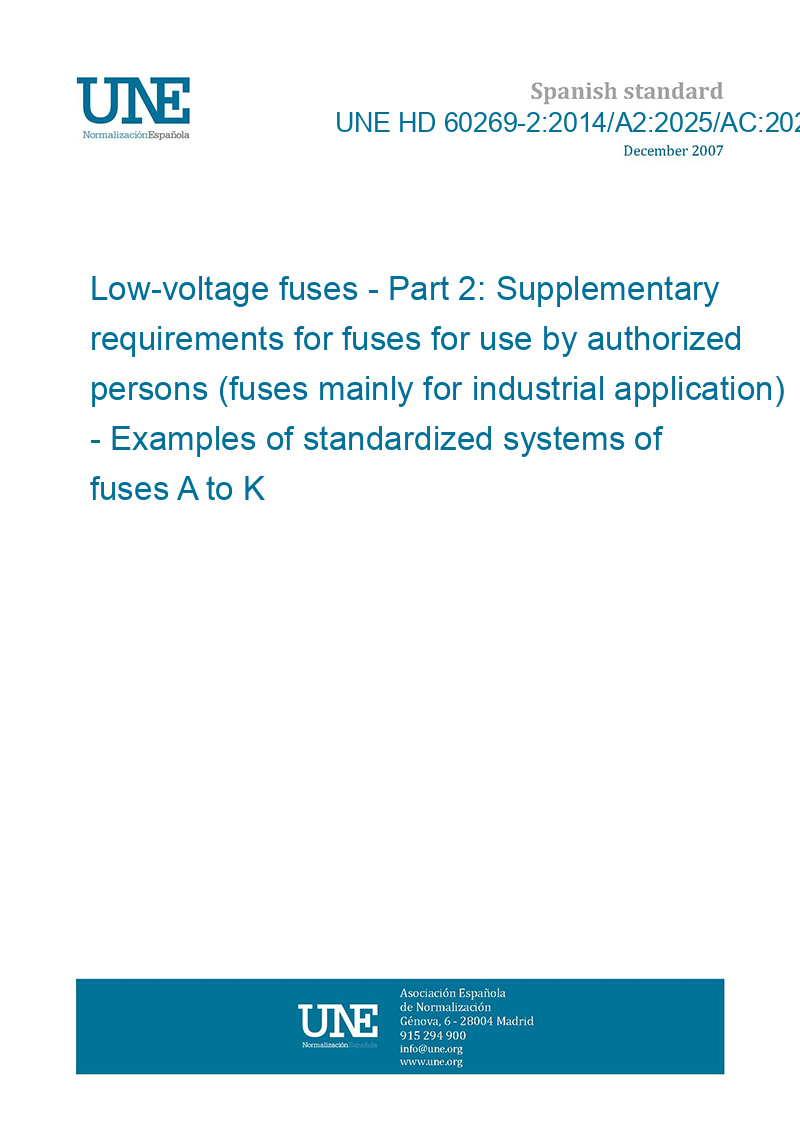 | Standard number: | UNE HD 60269-2:2014/A2:2025/AC:2026-01 |