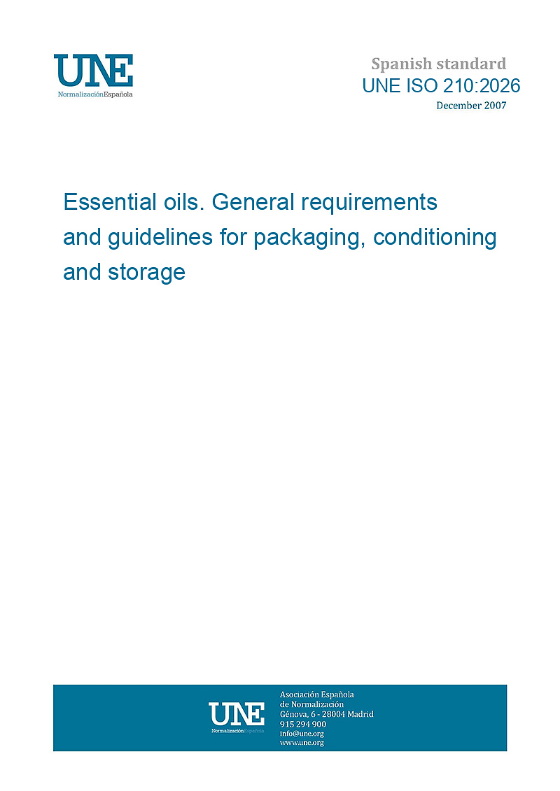 Este documento describe los requisitos de los envases previstos para contener aceites esenciales. También proporciona algunos requisitos generales y directrices relativos al acondicionamiento y almacenamiento de los aceites esenciales. Los aceites esenciales se utilizan para diferentes fines: uso alimentario; uso farmacéutico; uso en perfumería y cosmética; muestras de referencia o muestras de ensayo; materias primas industriales. Se espera que los envases utilizados para aceites esenciales cumplan también los requisitos de las reglamentaciones nacionales o internacionales. Este documento describe los materiales que se utilizan para los envases previstos para contener aceites esenciales, dependiendo de los usos enumerados anteriormente.