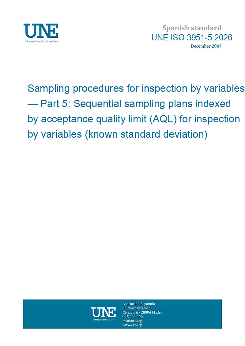 Procedimientos de muestreo para la inspección por variables. Parte 5: Planes de muestreo secuencial tabulados según el nivel de calidad aceptable (NCA) para la inspección por variables (desviación típica conocida).