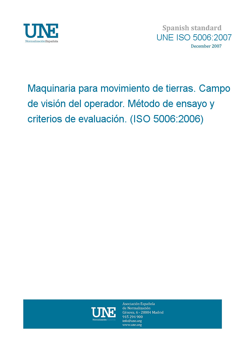 >UNE standards>UNE ISO 5006:2007 Maquinaria para movimiento de tierras. Campo de visión del operador. Método de ensayo y criterios de evaluación. (ISO 5006:2006)