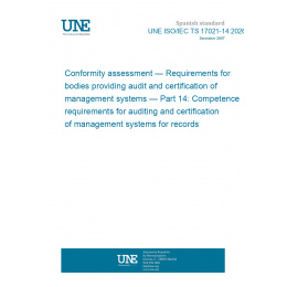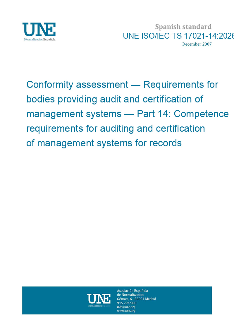 | Standard number: | UNE ISO/IEC TS 17021-14:2026 |